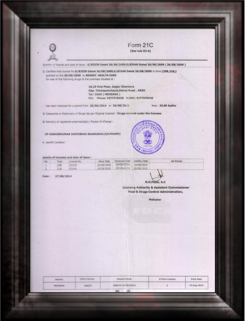 Plant Our 30,000 sq. ft. plant located in Kadi, Gujarat where we make Health for all available through our 50 employees working carefully and dedicatedly towards production of Nenshi products.